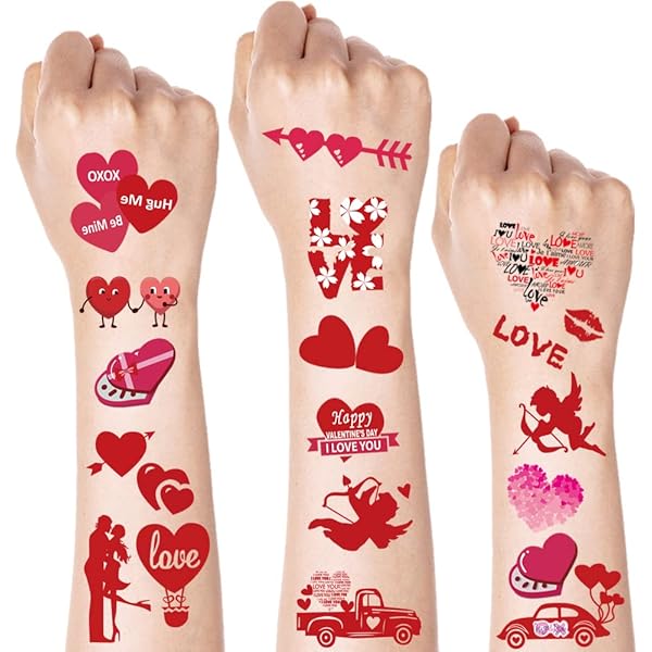 Amazon Com 90 Pcs Valentines Temporary Tattoos Valentines Fake Tattoo Stickerscupid Heart Love Rose Bouquet Waterproof Body Sticker For Lover Theme Decorations Girls Women Favor Party Supplies 8 Sheets Beauty Personal Care